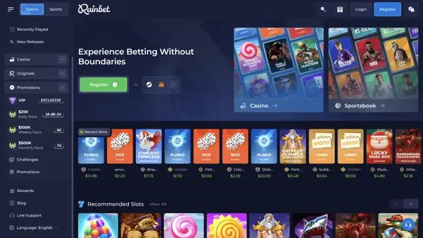 In de lobby vind je slots, live dealer-tafels, Originals zoals Mines en Plinko, en een volledige sportsbook. We voegen ook regelmatig nieuwe titels toe van bekende studio’s. Als je een snelle start, een duidelijke cashier en veel spelstijlen op één plek wilt, is Rainbet daarvoor gebouwd.