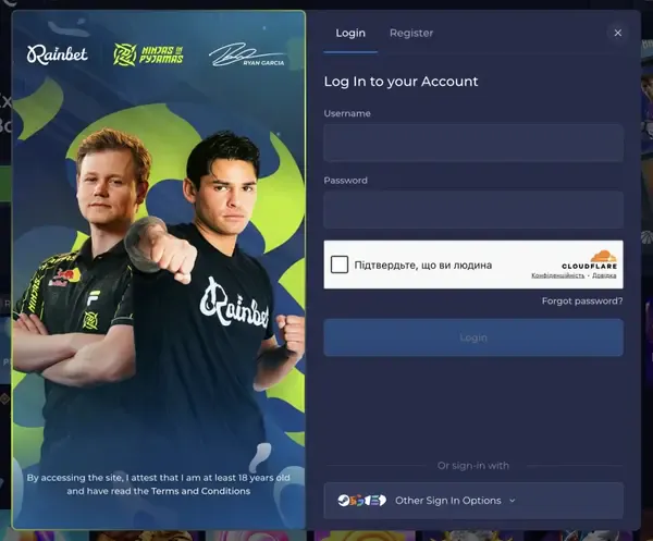 - Ga naar Rainbet login en log in om de cashier en spel-lobby te bereiken.